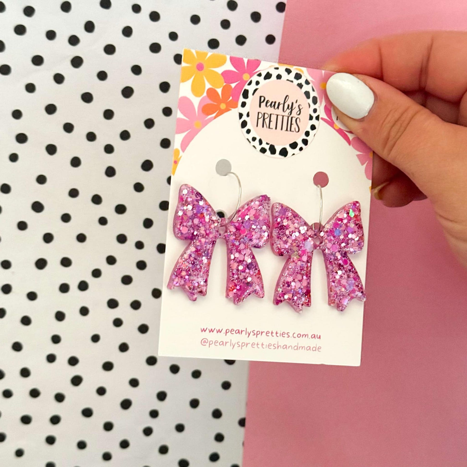 Bonnie Bow dangle hoop earrings- Purple Sparkle