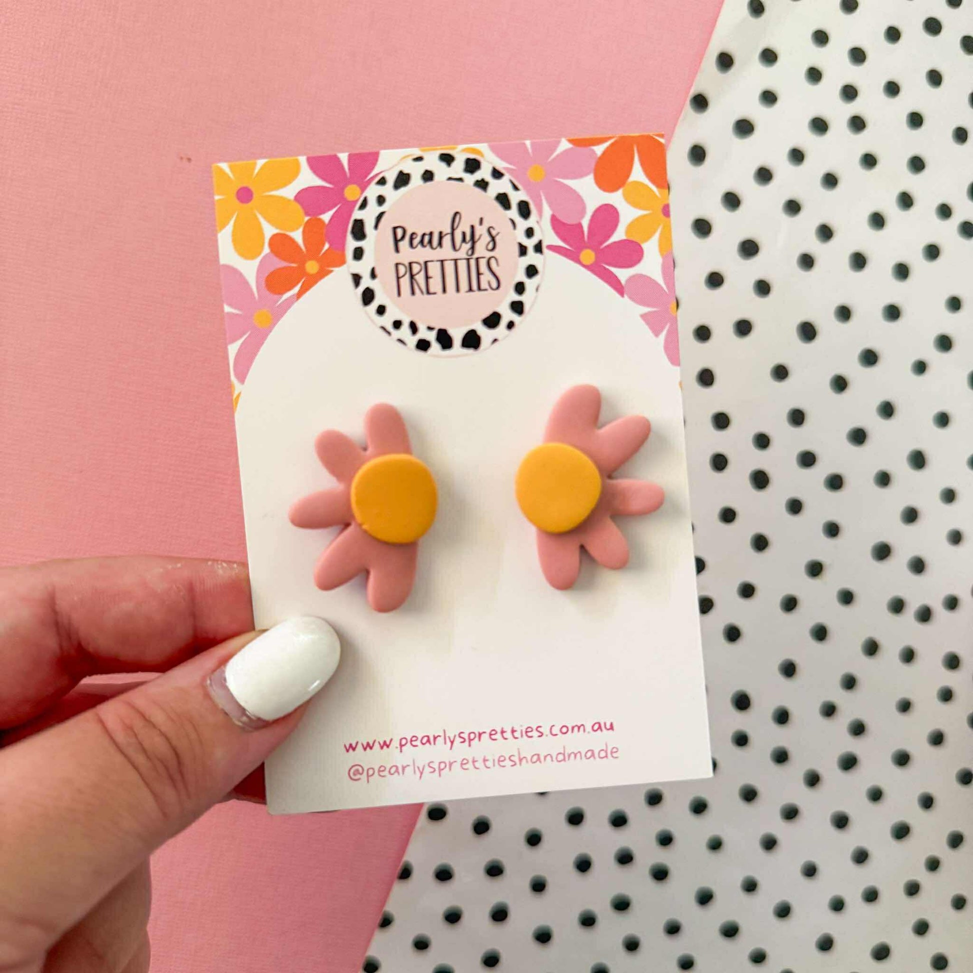 Daisy Daze Polymer Clay statement Stud earring - Dusty Pink/Mustard