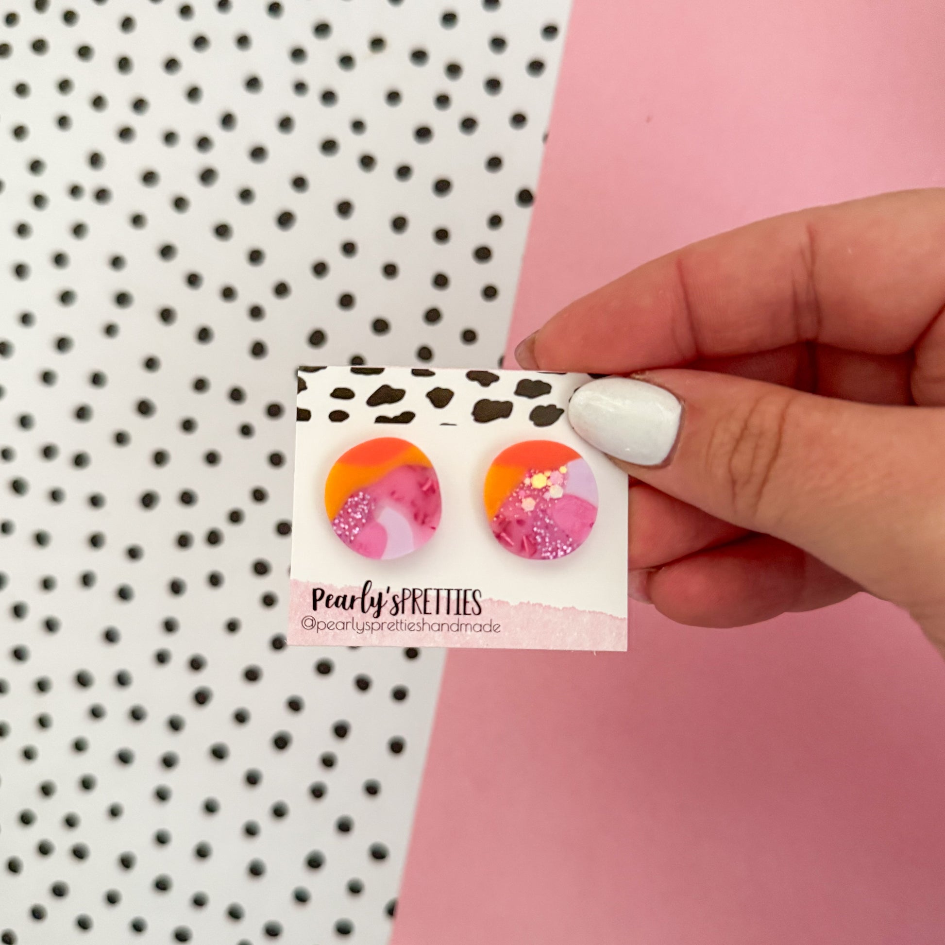 Matt finish- Medium Organic circle stud- Sunset Glitz - SGS05